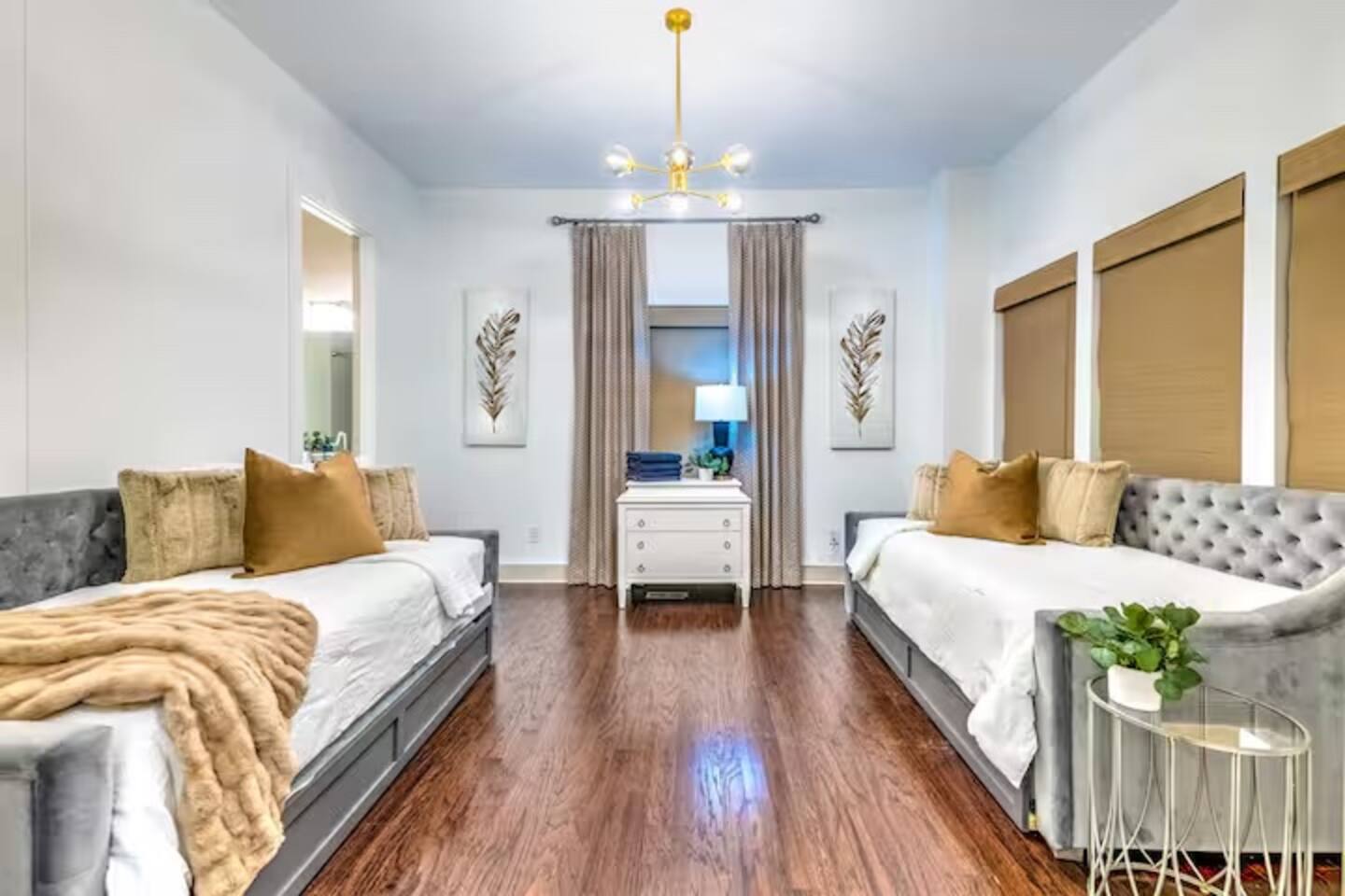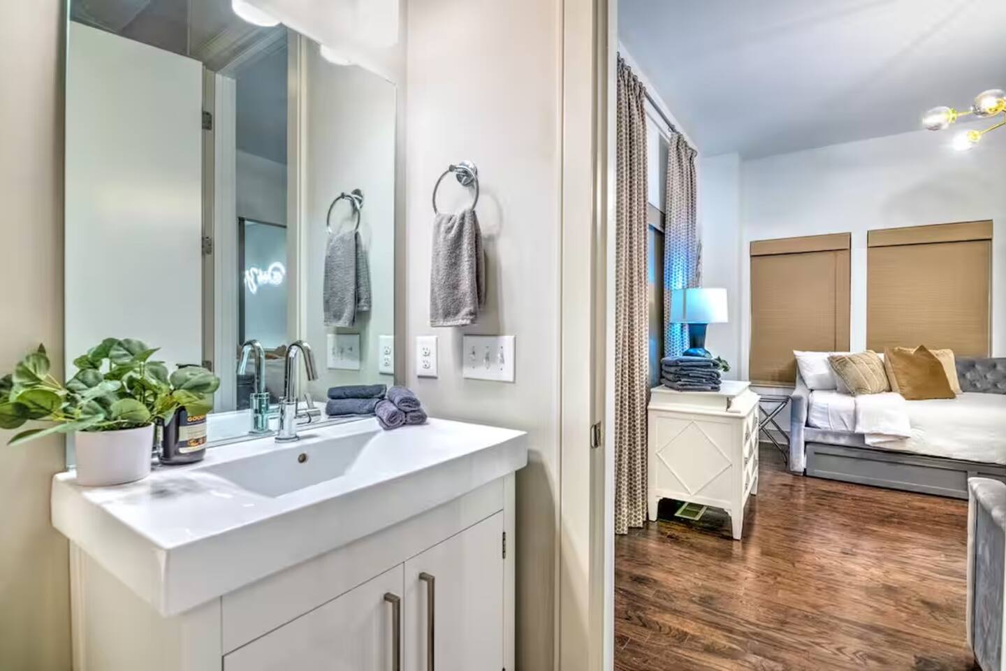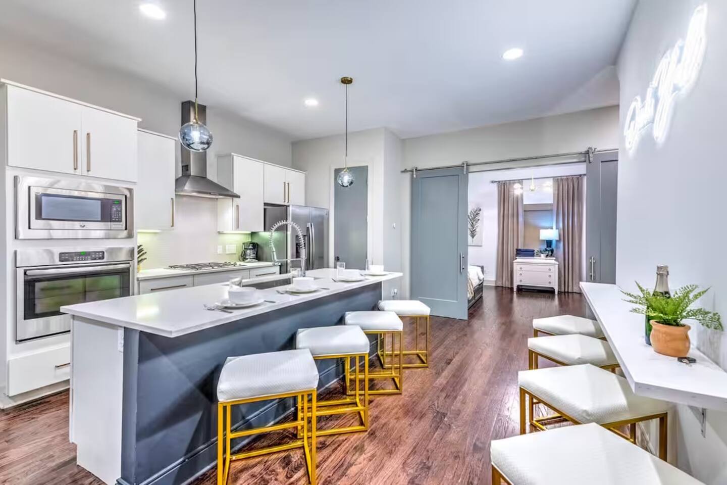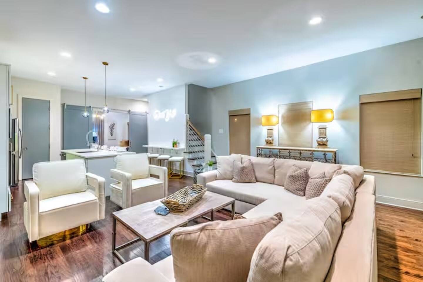 The whole group will enjoy easy access to everything from this centrally located home. Elevate your stay at this luxe private home, a stylish 4BD/4BA steps from the Gulch. With high-end touches throughout, plentiful sleeping arrangements, and a private garage, the home is crafted for comfort and ease. The highlight: an expansive rooftop terrace with breathtaking skyline views—ideal for sunset gatherings or quiet mornings above the buzz of the city.