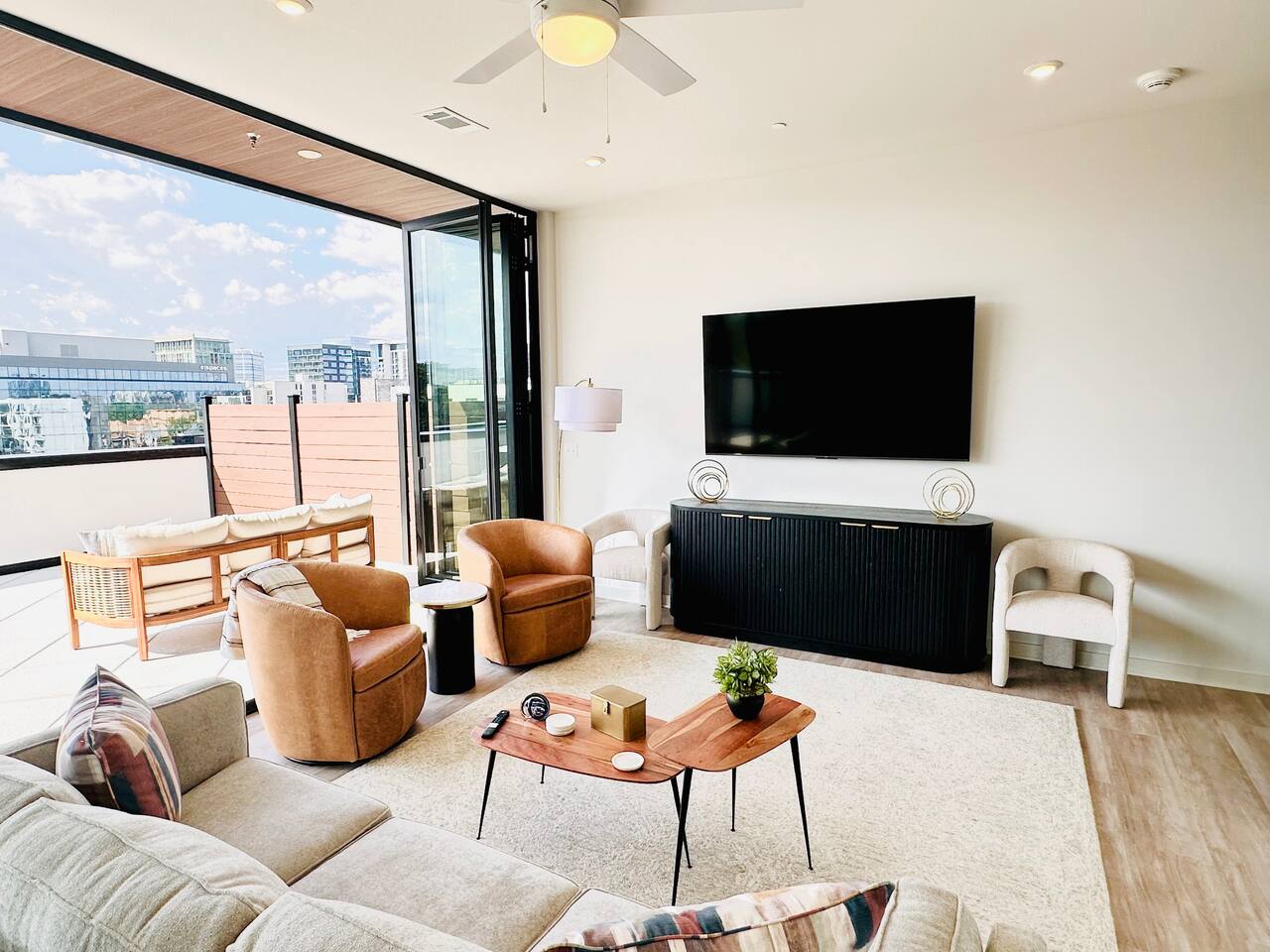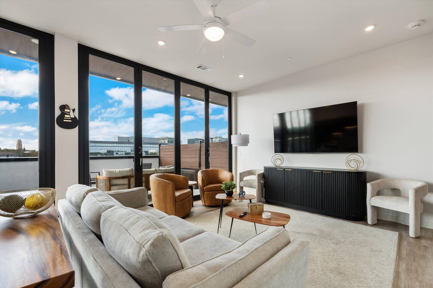 Stay in the heart of Music City! This stylish 3 bedroom penthouse on Music Row puts you steps away from Nashville’s legendary live music venues as well as the historic Vanderbilt campus. With modern amenities, large private roof deck and top notch kitchen, it’s the perfect getaway. Kick back, explore and let the rhythm of Nashville set the tone for your next trip!