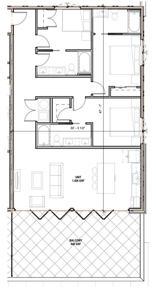Private apartment plus access to the building's 5th floor communal space, pool area and parking garage.